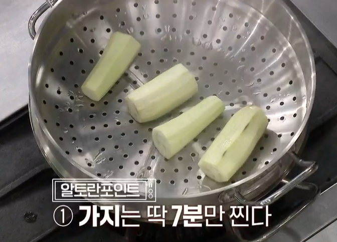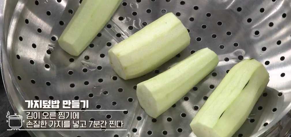 1) 가지는 딱 7분만 찜기에 쪄준다.