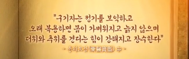 동의보감에 의하면 구기자가 정기를 보익하고 오래 복용하면 몸이 가벼워지면서 늙지 않고 더위와 추위를 견디는 힘이 강해지고 장수한다고 기록되어 있습니다.