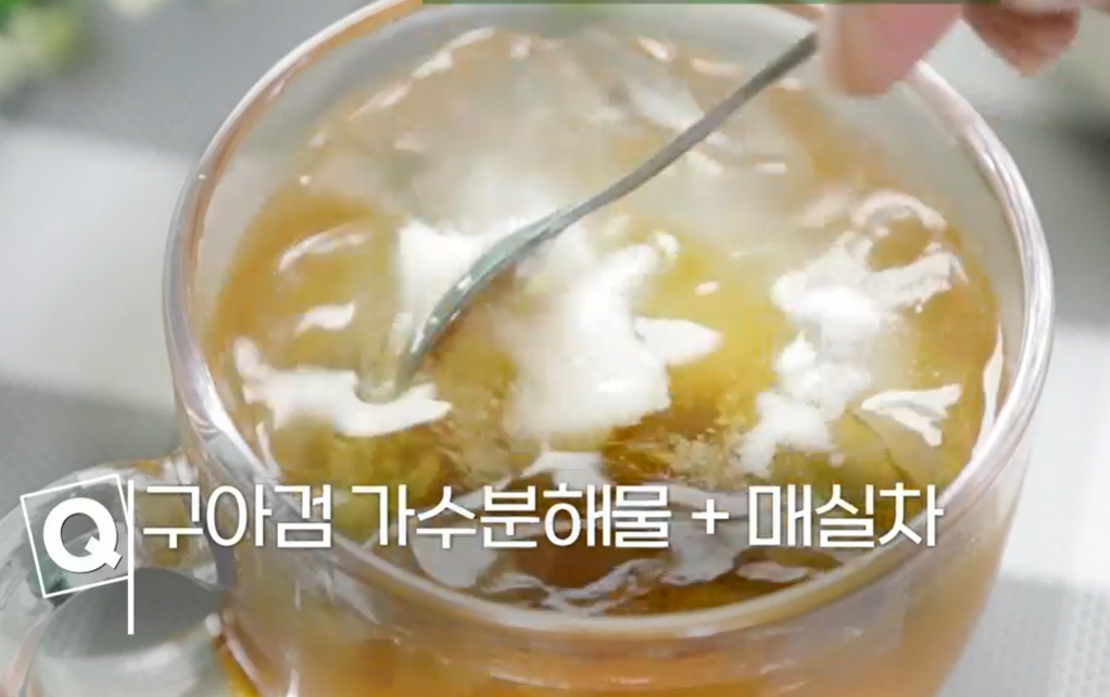 구아검 가수분해물은 매실차와 함께 먹으면 시너지 효과를 기대할 수 있습니다. 발효로 만들어진 매실차에는 다량의 카테킨산이 들어있어 장 속 나쁜 균의 번식을 억제하고 장내 살균성을 높이는데 효능이 있는 것으로 알려져 있기 때문입니다.
