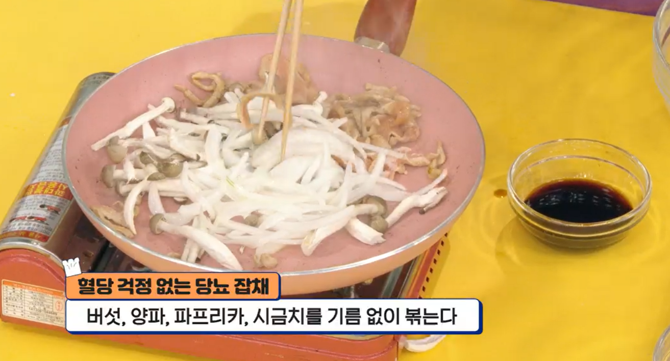 맛있는 잡채를 다양한 야채와, 천사채로 대체한 당면과 함께 먹는다면 당뇨에 좋은 영양가 있는 음식이 됩니다.