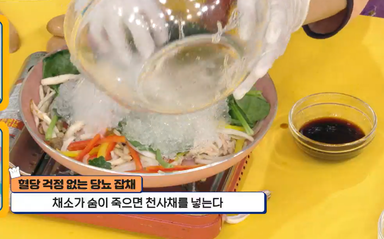 흔히 잡채에 들어가는 당면은 감자, 고구마 전분으로 이루어진 고 탄수화물이라 당뇨에는 적이 되는 식품 중 하나입니다.