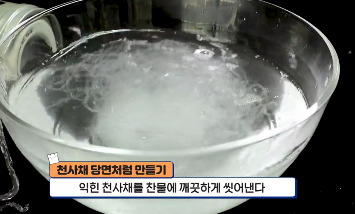 2) 익힌 천사채를 찬물에 깨끗하게 씻어 준비합니다.