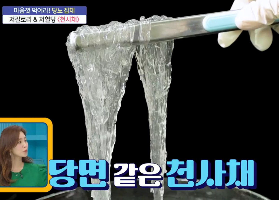 당면의 혈당지수는 100으로 초콜릿의 혈당지수인 90과 비슷합니다. 반면 천사채의 혈당지수는 14 이하이고 100g당 칼로리라 13kcal 밖에 되지 않아 다이어트에 도움이 됩니다.
