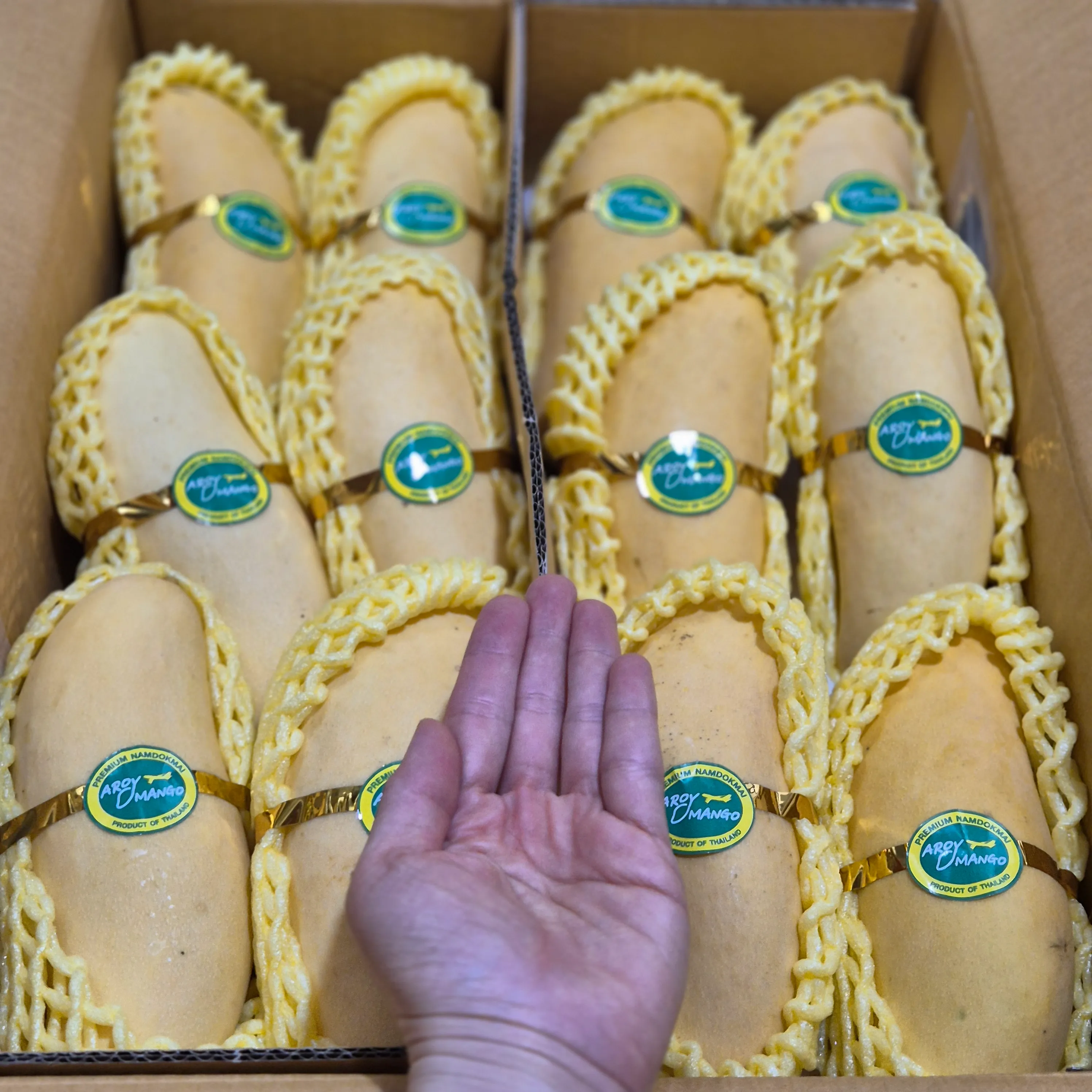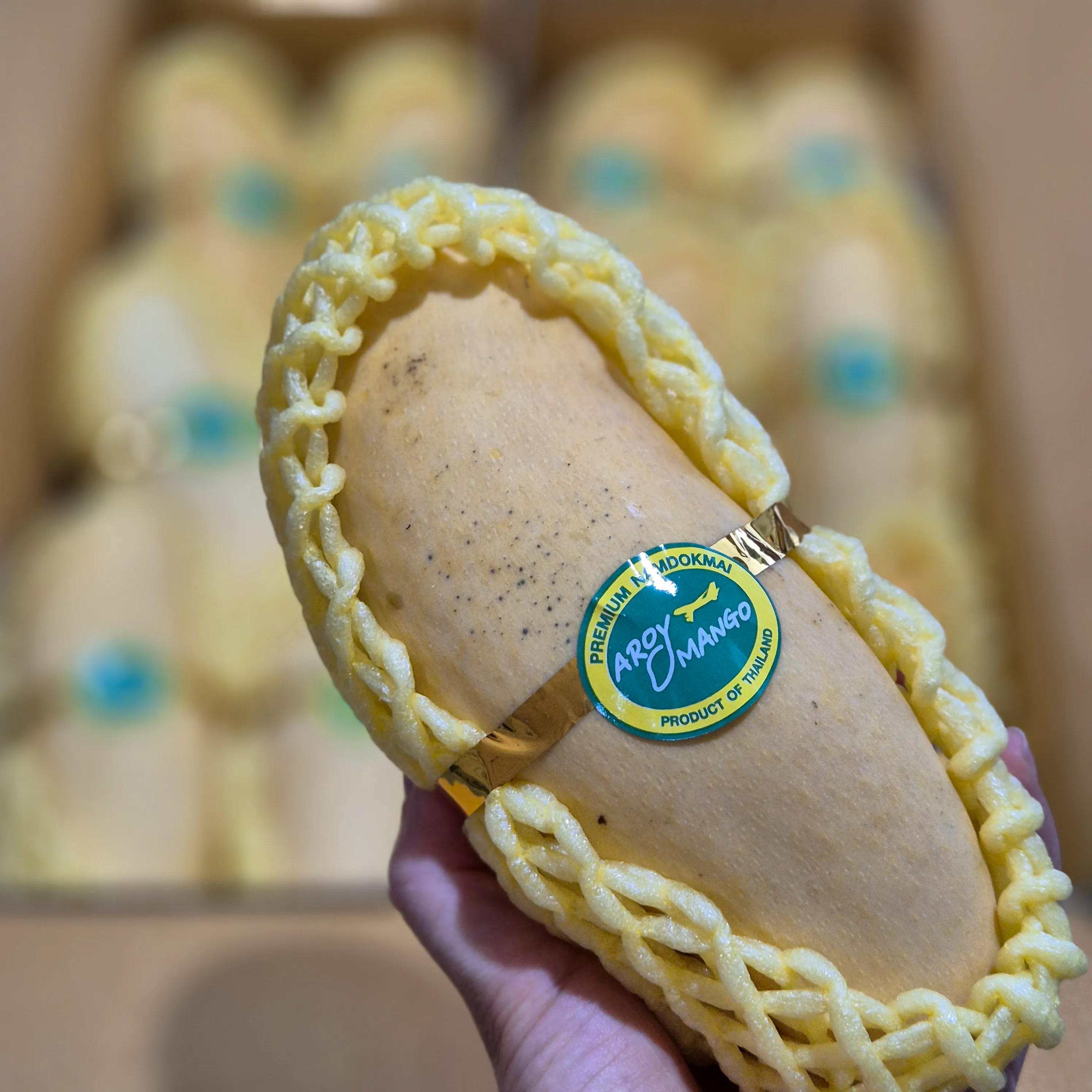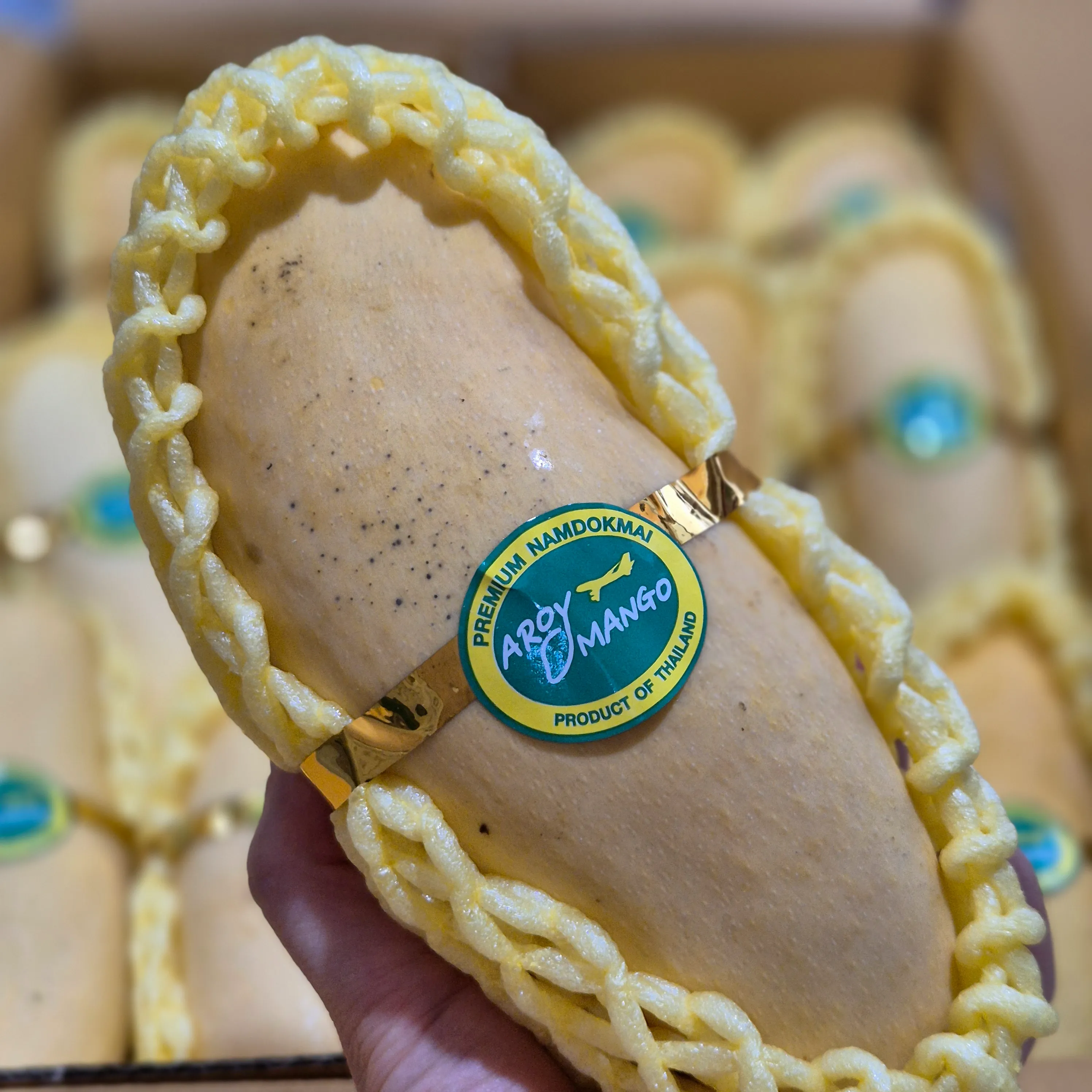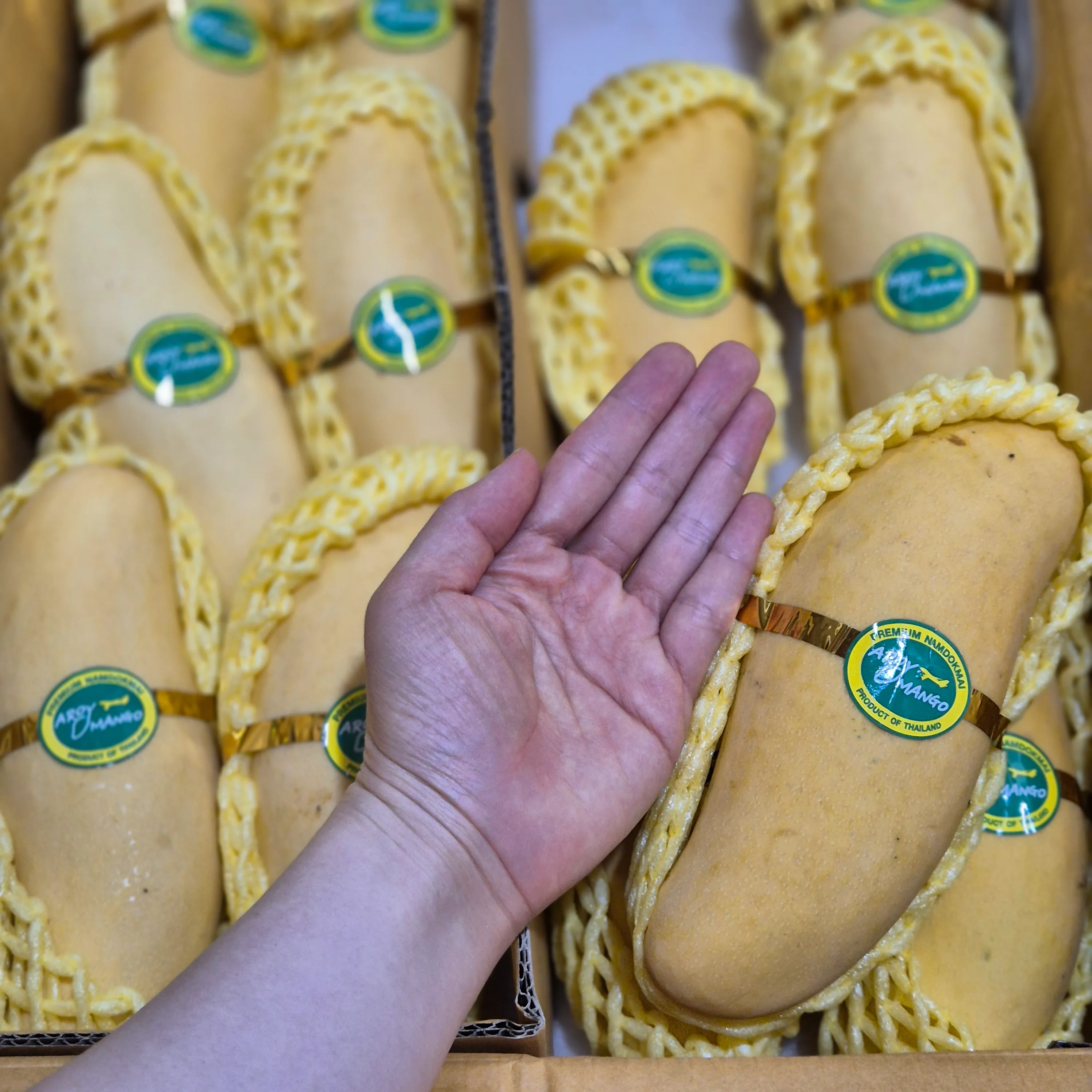 마하차녹 망고는 길쭉한 곡선형 모양을 하고 있으며, 성숙할수록 노란색에서 붉은빛으로 변합니다. 이 망고는 매우 달고 향긋한 맛을 가지고 있으며, 과육이 부드럽고 섬유질이 거의 없습니다. 주로 태국에서 재배되며, 현지에서는 황제망고로도 불립니다. 마하차녹 망고는 특히 과일 샐러드나 디저트로 많이 사용되며, 그 특유의 달콤한 맛과 부드러운 식감으로 유명합니다.