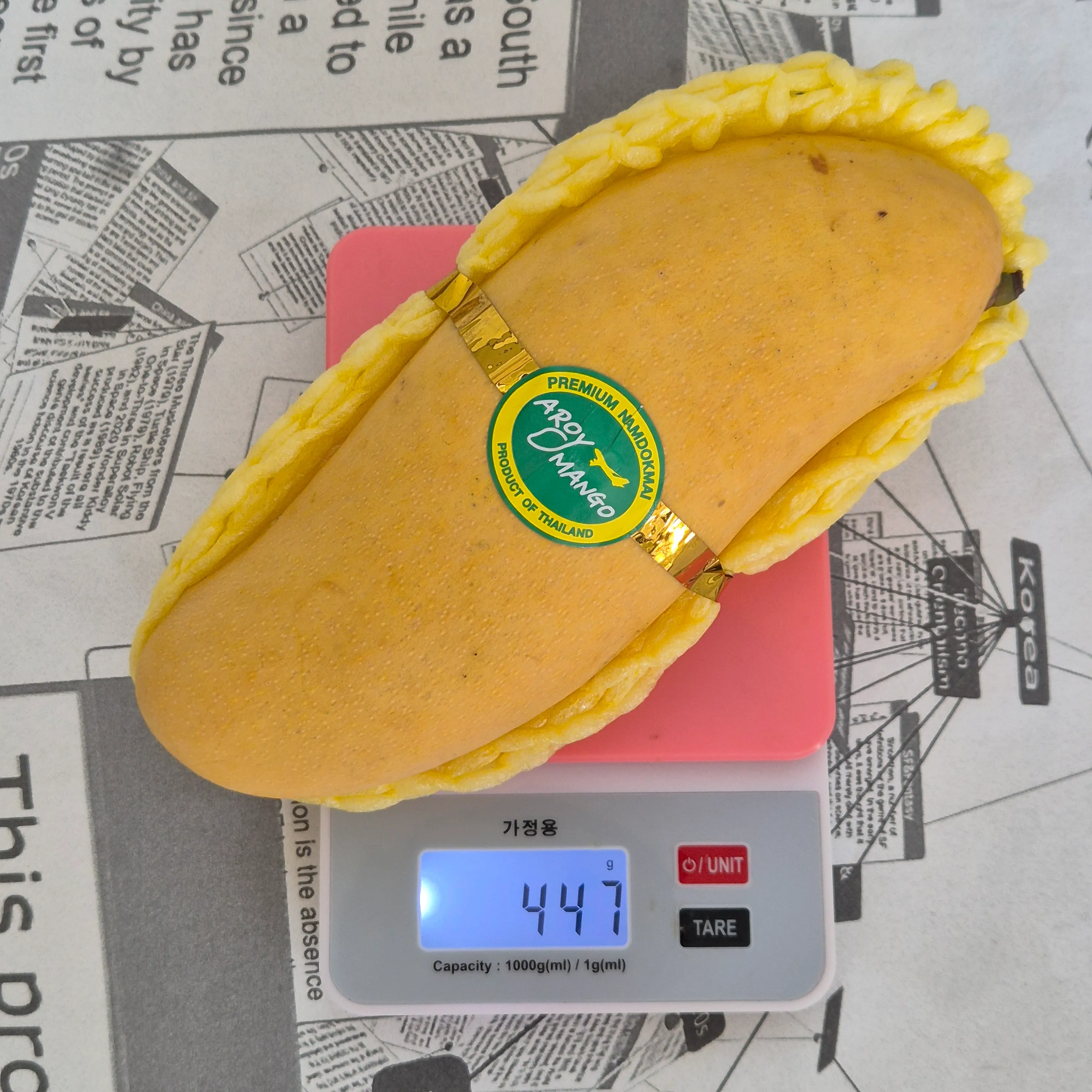 망고의 껍질은 매끈하고 윤기가 나야 합니다. 껍질에 상처가 있거나 검붉은색 멍이 들어있으면 피하는 것이 좋습니다. 또한, 잘 익은 망고의 껍질 표면에는 찐득한 당 성분이 나타날 수 있습니다. 껍질 상태를 꼼꼼히 확인하세요. 무게 확인