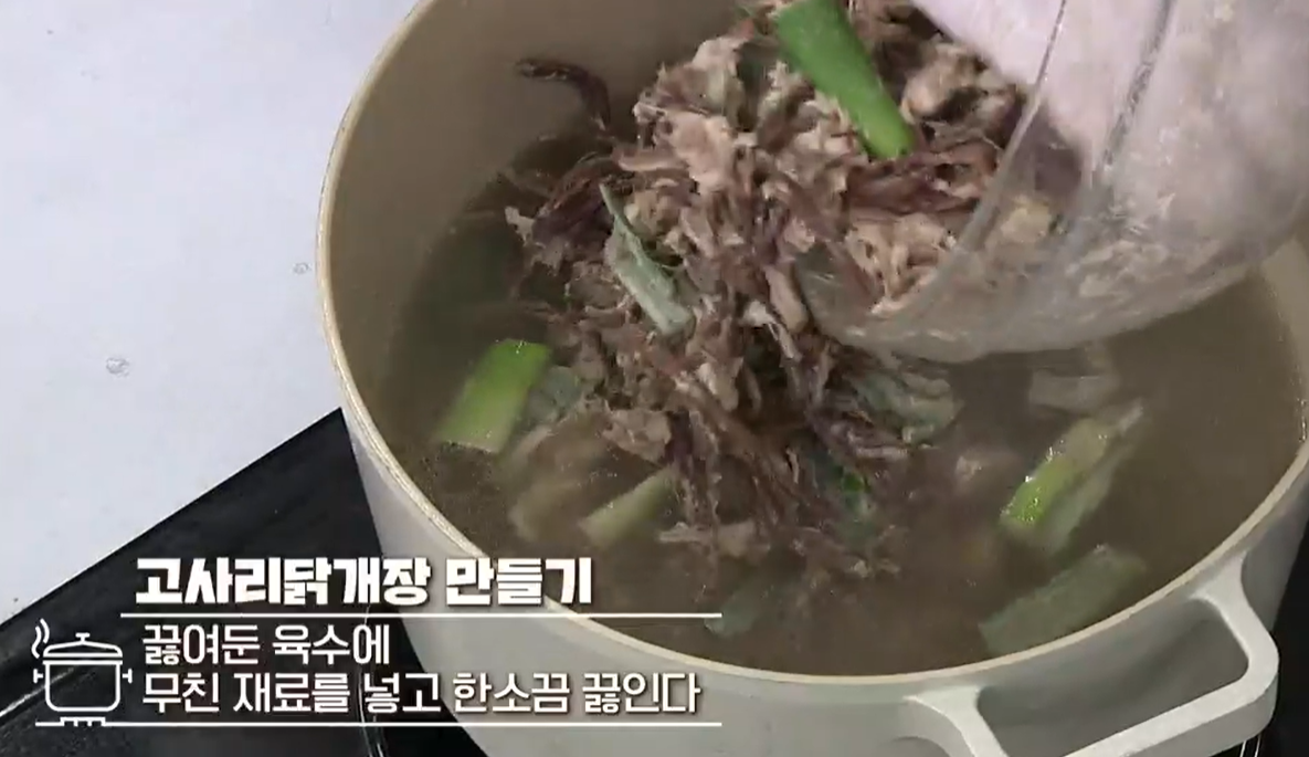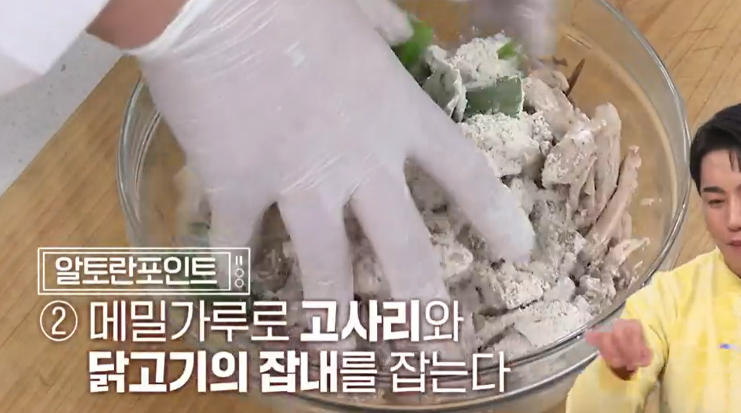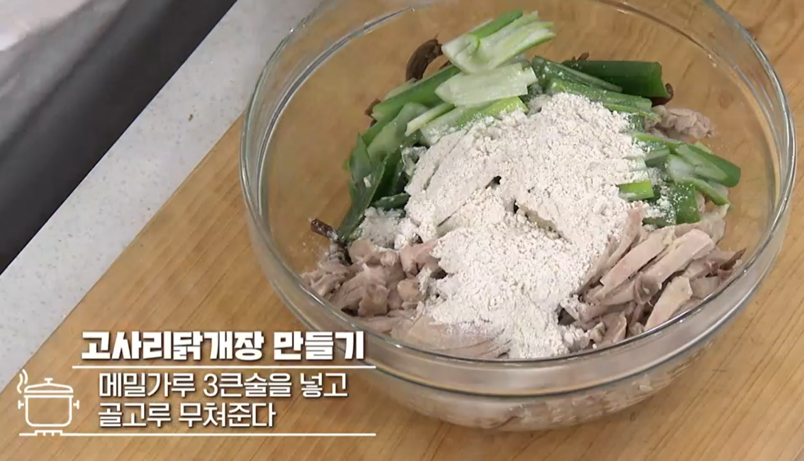 2) 메밀가루로 닭개장에 들어갈 고사리와 닭고기의 잡내를 잡는다.