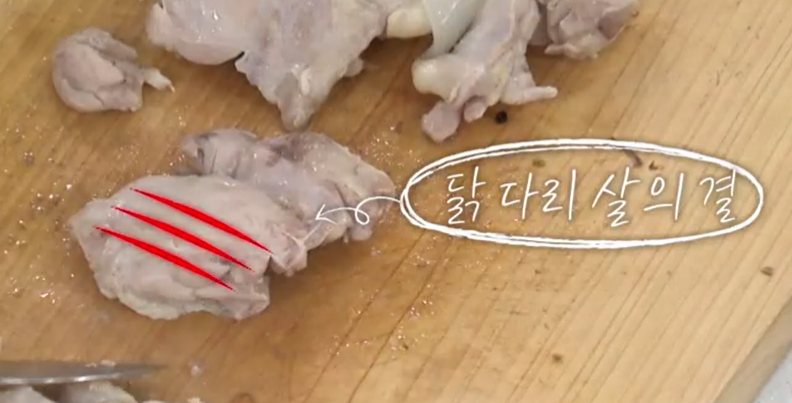 7) 닭개장 맛있게 끓이는 법을 위해 닭고기는 결대로 썰어야 으깨지지 않고 식감을 유지할 수 있습니다.