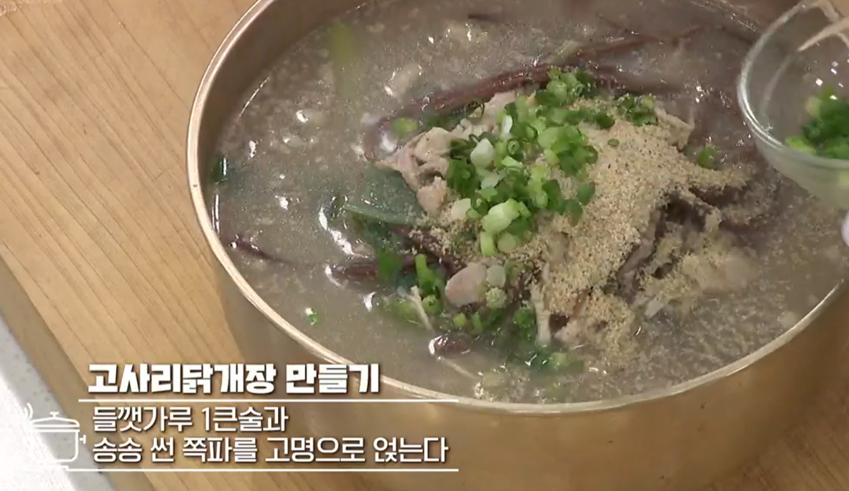 19) 들깻가루 1큰술과 송송 썬 쪽파를 고명으로 얹어내면 맛집 사장님도 푹 빠진 닭개장 맛있게 끓이는 법 알토란 황금레시피가 완성됩니다.