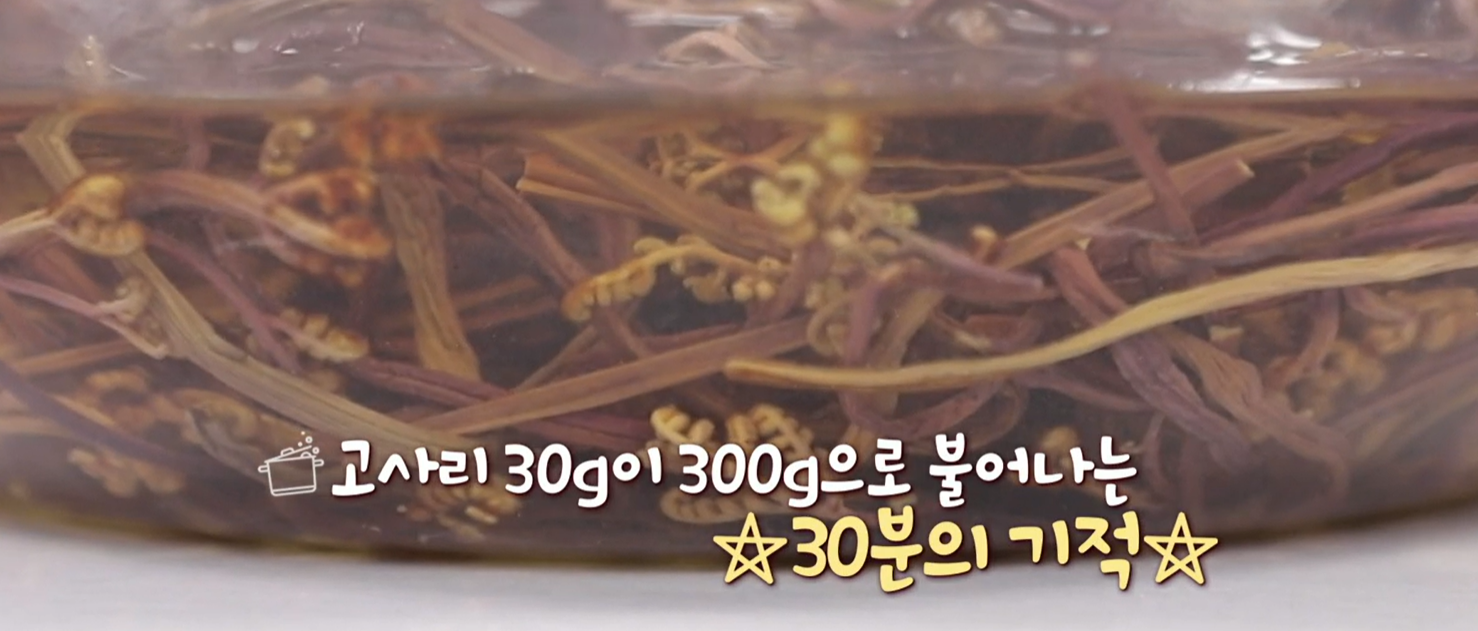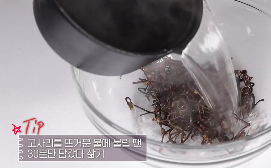 * 고사리를 뜨거운 물에 불릴 때에는 30분 정도만 담갔다가 삶아주면 빠르게 불릴 수 있습니다.
