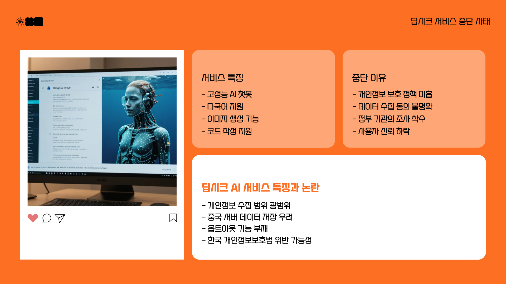 안녕하세요! 오늘은 최근 이슈가 되었던 중국 인공지능 스타트업 딥시크에 대해 이야기해보려고 해요. 딥시크가 한국에서 서비스를 잠정 중단하게 된 이유는 개인정보 보호와 관련된 문제 때문입니다.