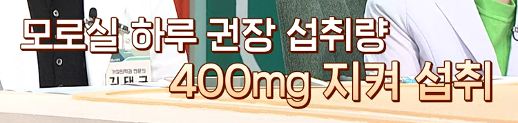 모로실의 하루 권장 섭취량은 400mg으로 적정량을 지켜 섭취하는 것이 중요합니다. 모로실은 천연 성분이기 때문에 큰 부작용은 없으나 과다 복용 시 속 쓰림, 위장 장애, 설사, 복통 등의 부작용이 발생할 수 있습니다. 임산부나 수유뷰, 특이 체질 환자라면 모로실 섭취 전 전문가와 상의 후 복용하는 것을 권유드립니다.