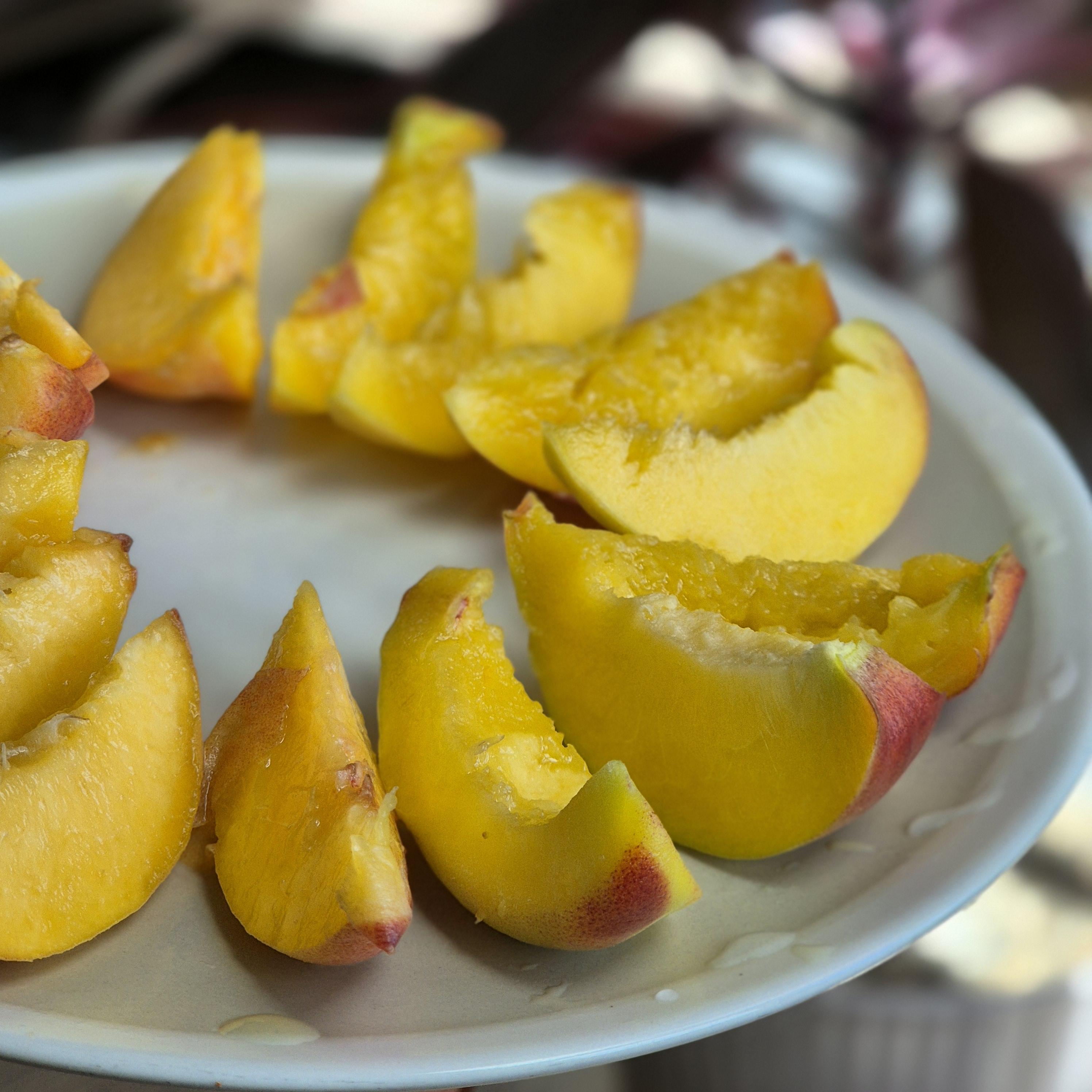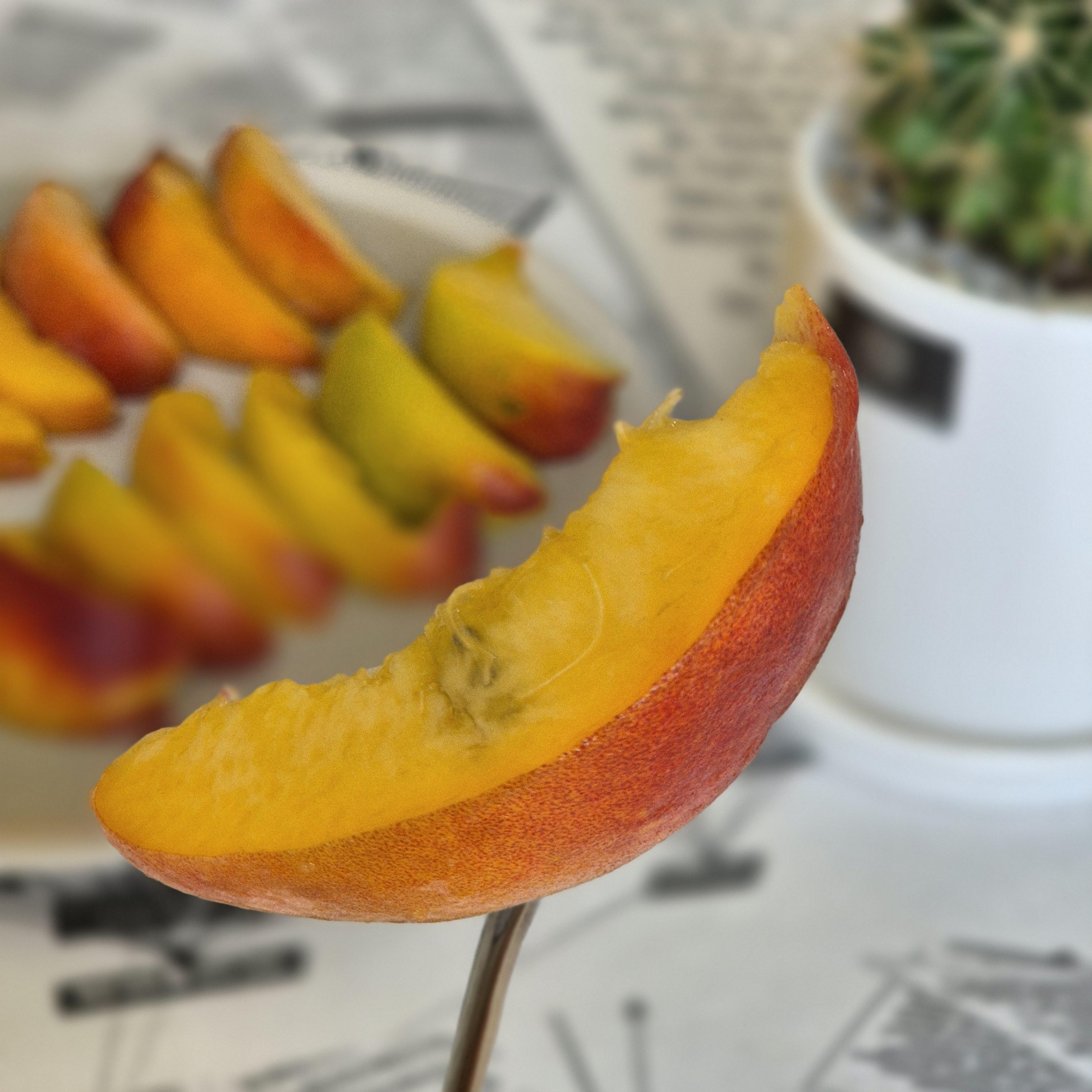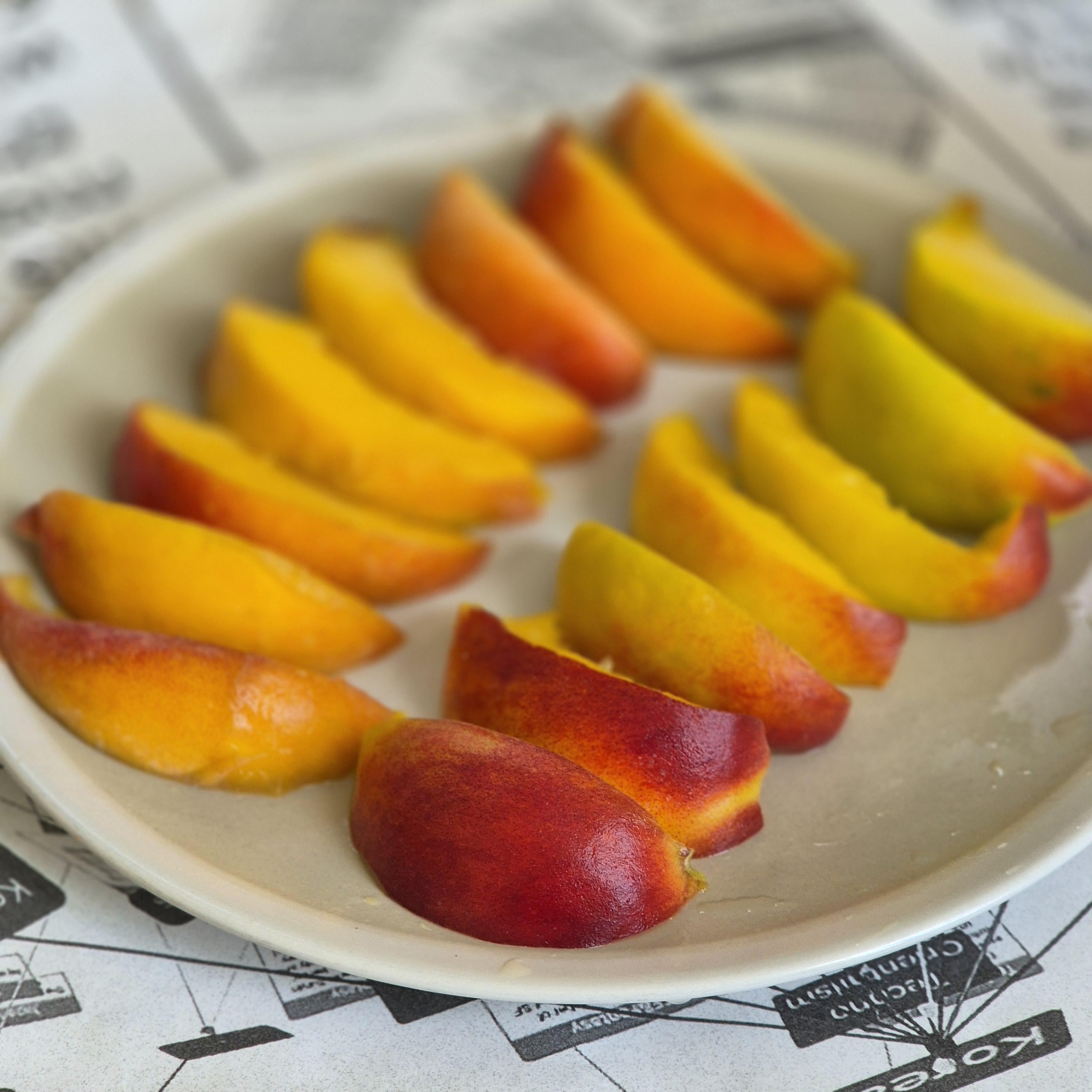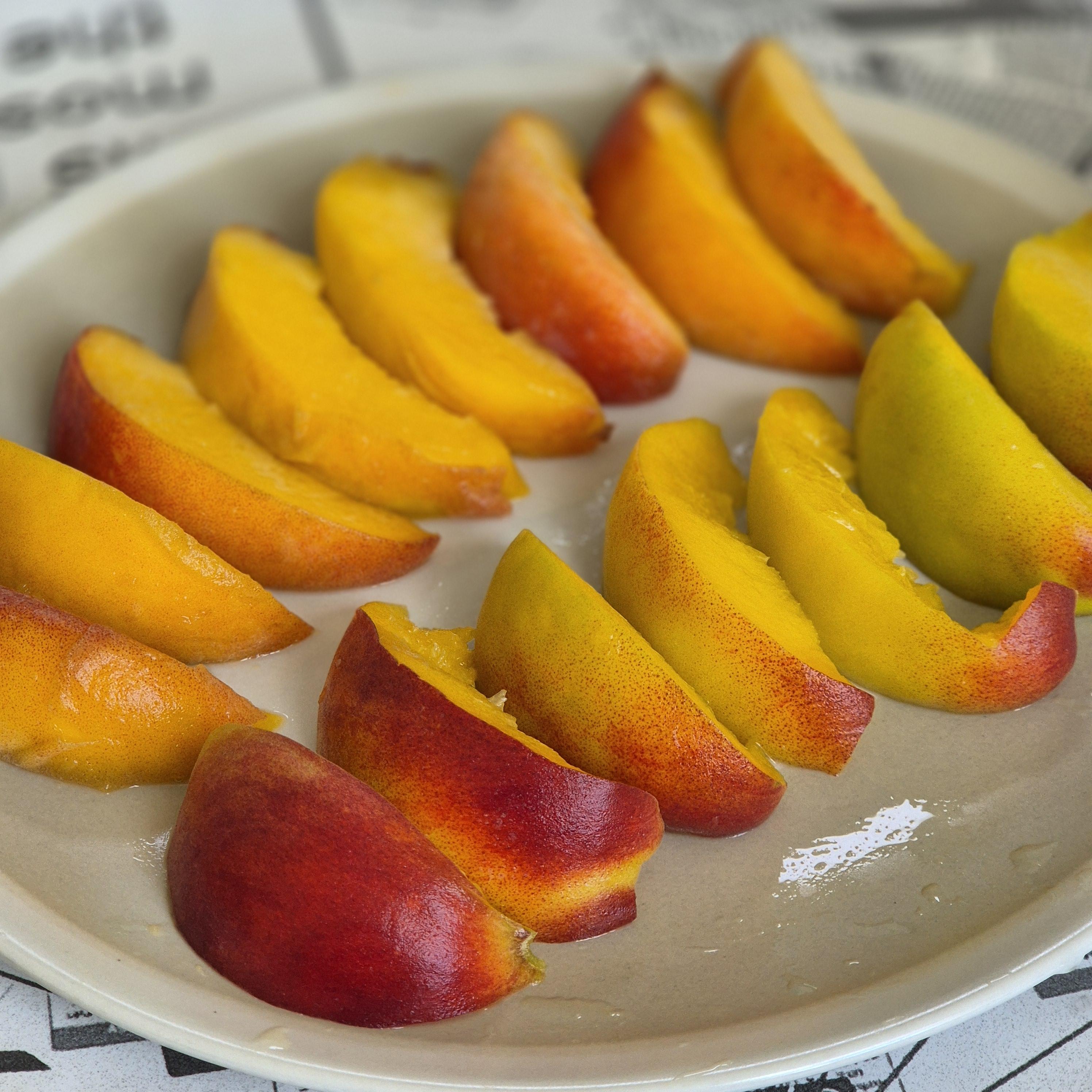 복숭아를 고를 때는 먼저 색깔을 확인해야 합니다. 복숭아 표면이 균일한 노란색 또는 주황색을 띠는 것이 가장 좋습니다. 만약 표면에 갈색 반점이 있거나 푸른빛이 감돌면 신선도가 떨어진 것입니다.