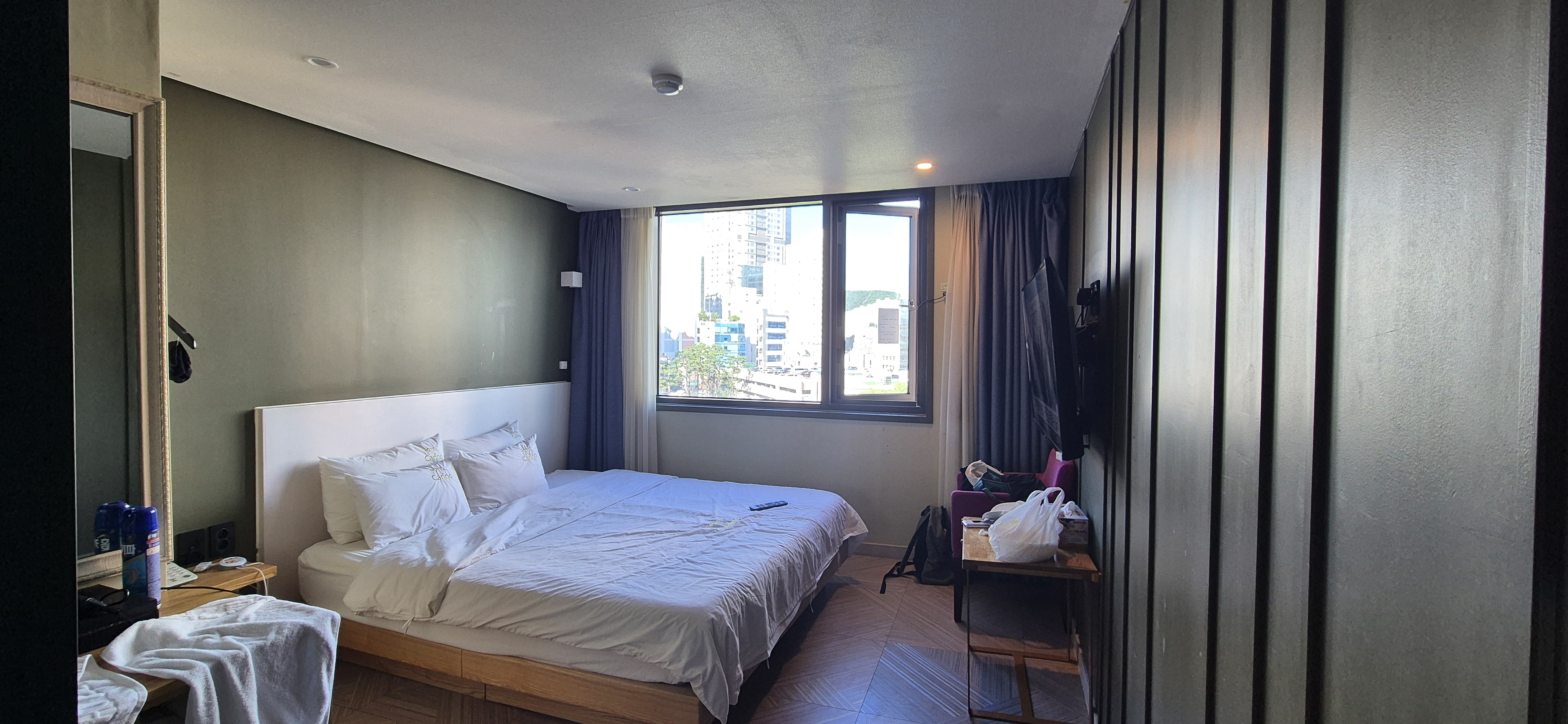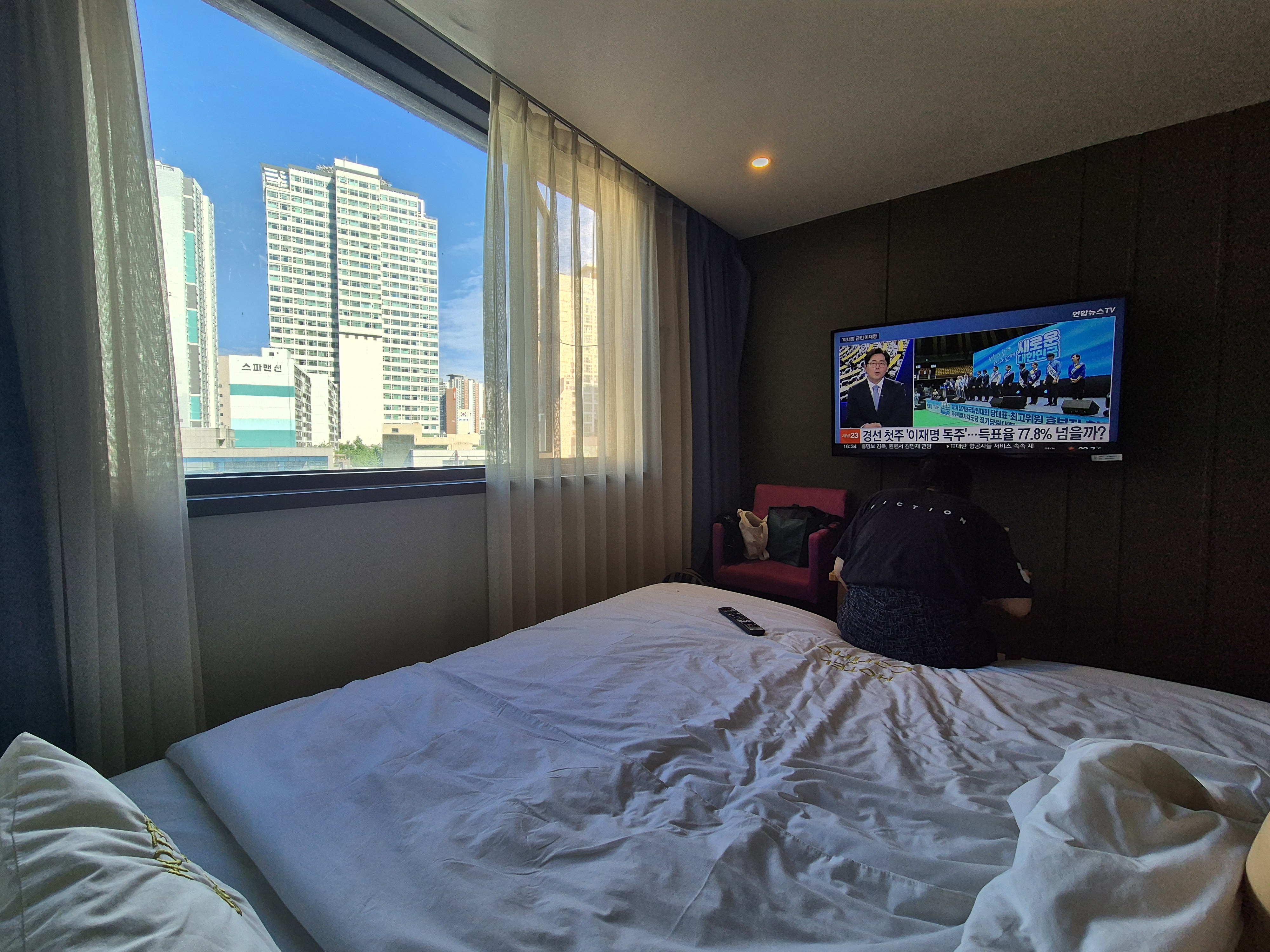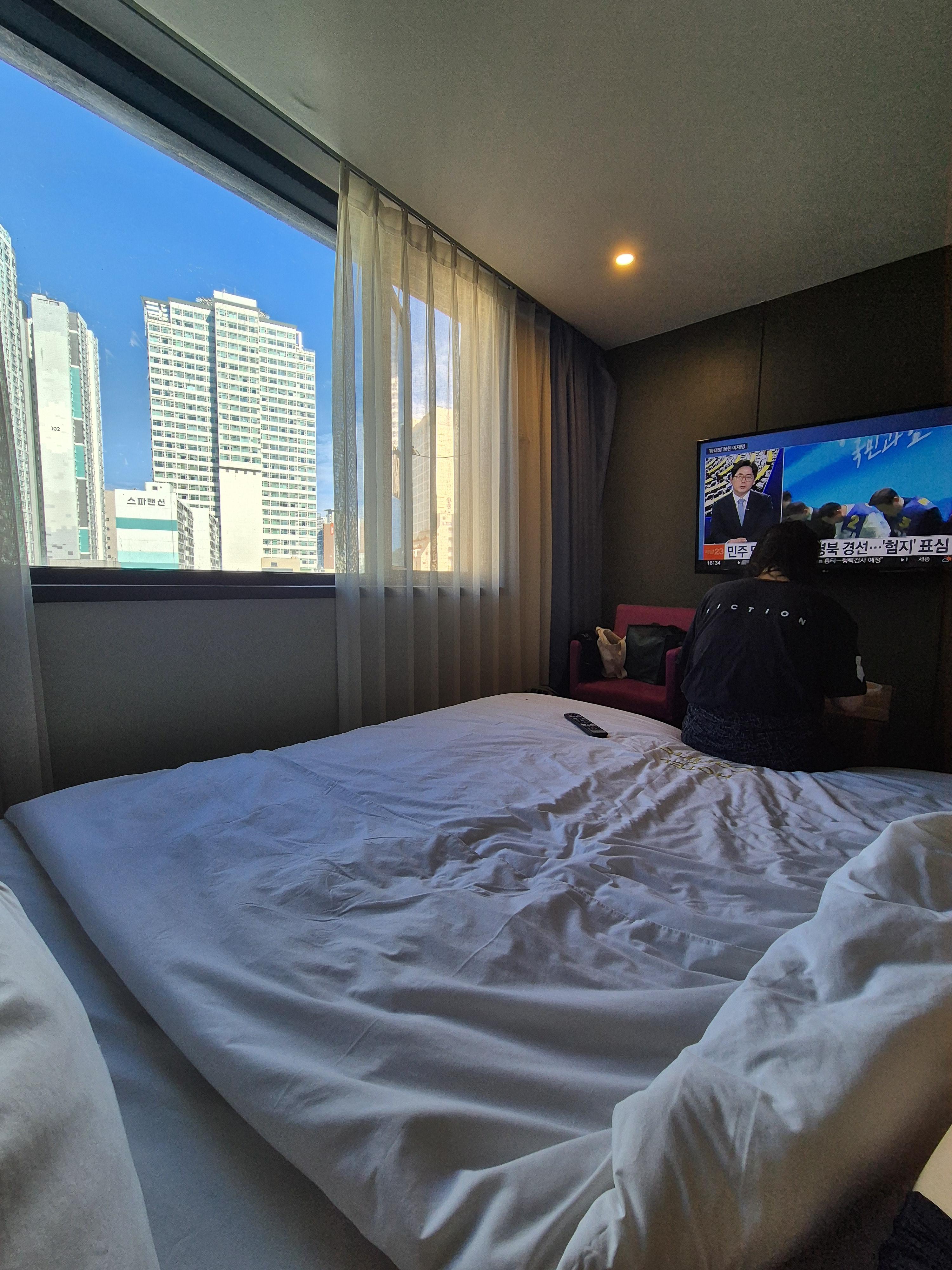 캬 부산 동래구에서 이름 좋은 호텔들 숙박할 때도 이렇게 좋은 뷰를 기대하기는 어려웠던 곳이 많은데, 심지어 창문이 없는 곳도 있었는데, 여기는 창문도 살짝 열어둘 수 있어서 환기시키기도 좋더라고요. 간만에 푹신한 모텔 침대에 누워있으니 잠깐 살짝 여행온 기분이었어요.