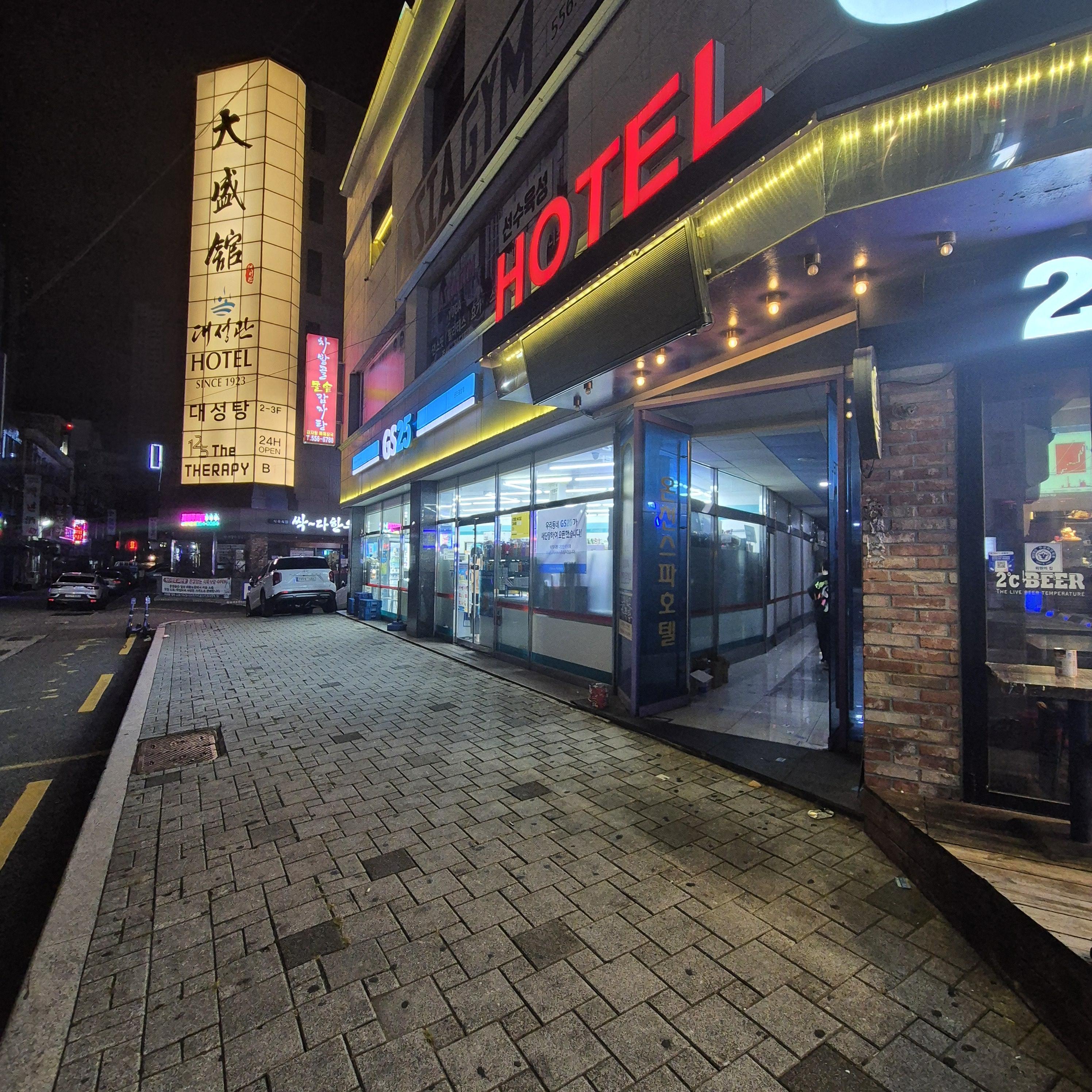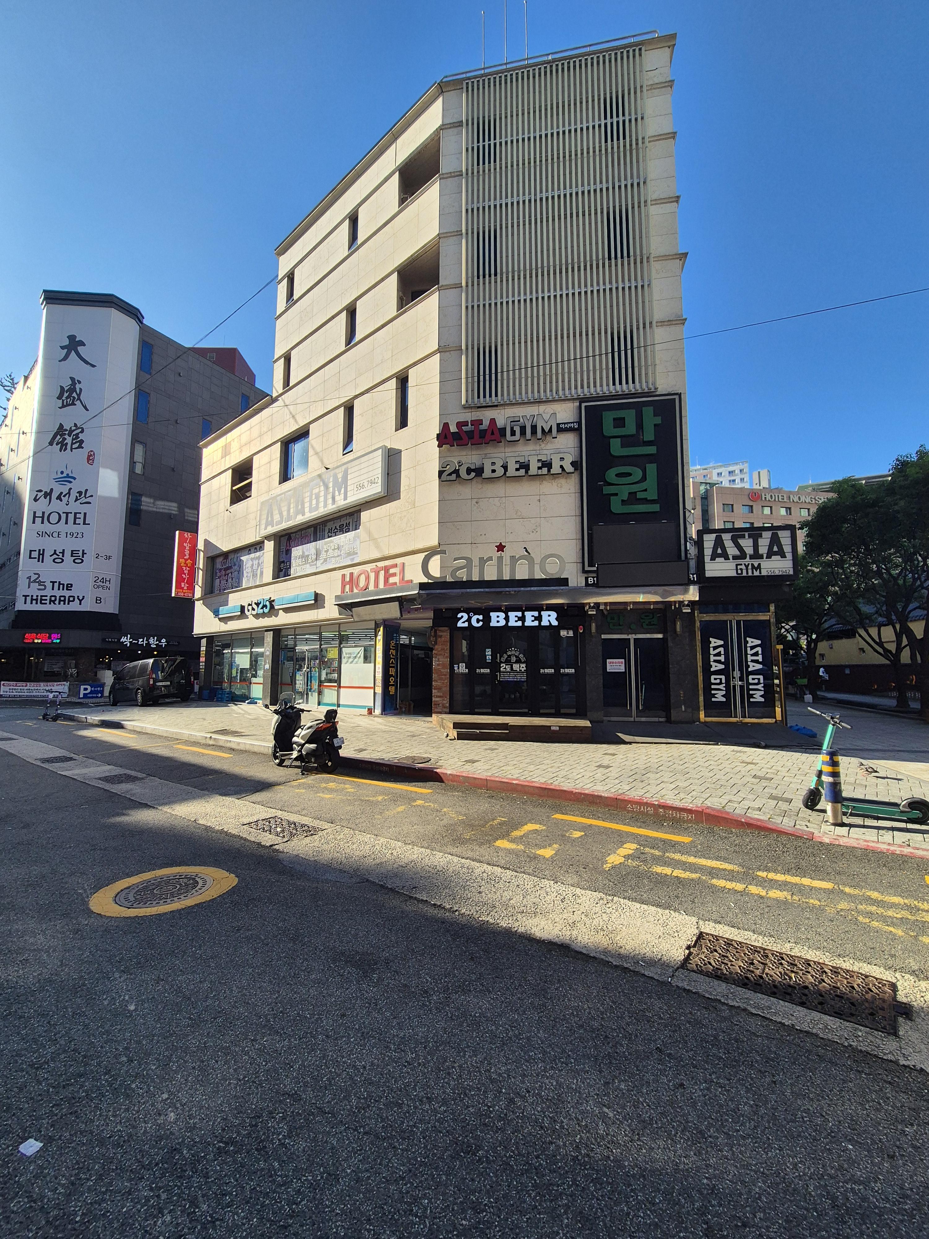 카리노호텔은 이름이 카리나모텔과 헷갈릴 수 있으니 주의하셔야해요. 위치는 온천장 대성관 호텔 대성탕있는 곳 가기 바로 전 GS25편의점과 차밭골돌솥감자탕, 2도씨 비어가 있는 건물인데요.
