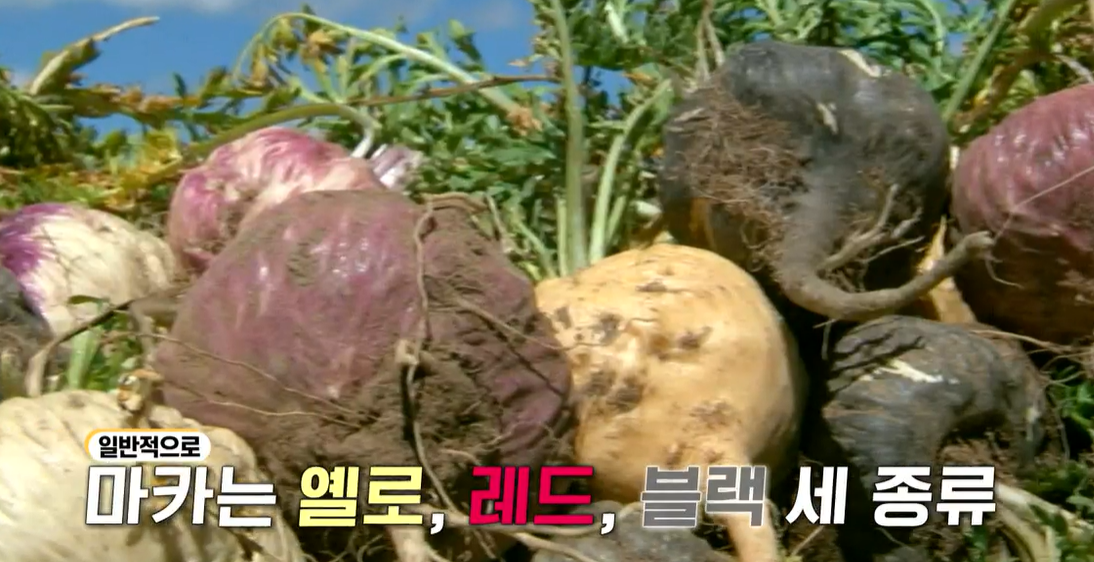 뿌리채소의 일종으로 사람과 동물에게 뛰어난 활력제로 쓰인 마카는 색이나 크기에 따라 크게 옐로, 레드, 블랙마카 세 종류로 나누는데, 그중 블랙마카는 전 세계 마카 생산량의 3퍼센트 정도만 차지하는 귀한 원료로 약성도 뛰어나다고 알려져 있습니다.