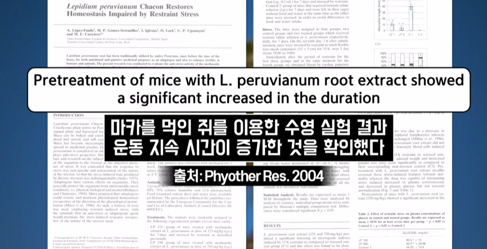 실제 쥐를 이용한 수영 실험 결과, 운동 지속 시간이 증가한 것을 통해 블랙마카의 항피로 효과를 확인할 수 있었다는 연구 발표가 있습니다.