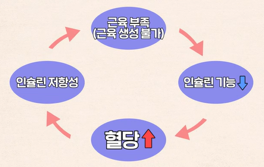 평소 단백질 섭취가 제대로 되지 않아 근육량이 부족해지면 인슐린 기능이 떨어져 저항성이 생기게 됩니다. 인슐린의 효율이 떨어지면 혈당의 반응이 높아지게 되고 근육 생성도 잘 되지 않아 또 근육 부족 현상의 악순환이 반복되기 때문에 소화 흡수가 잘 되는 단백질 섭취는 필수적입니다.