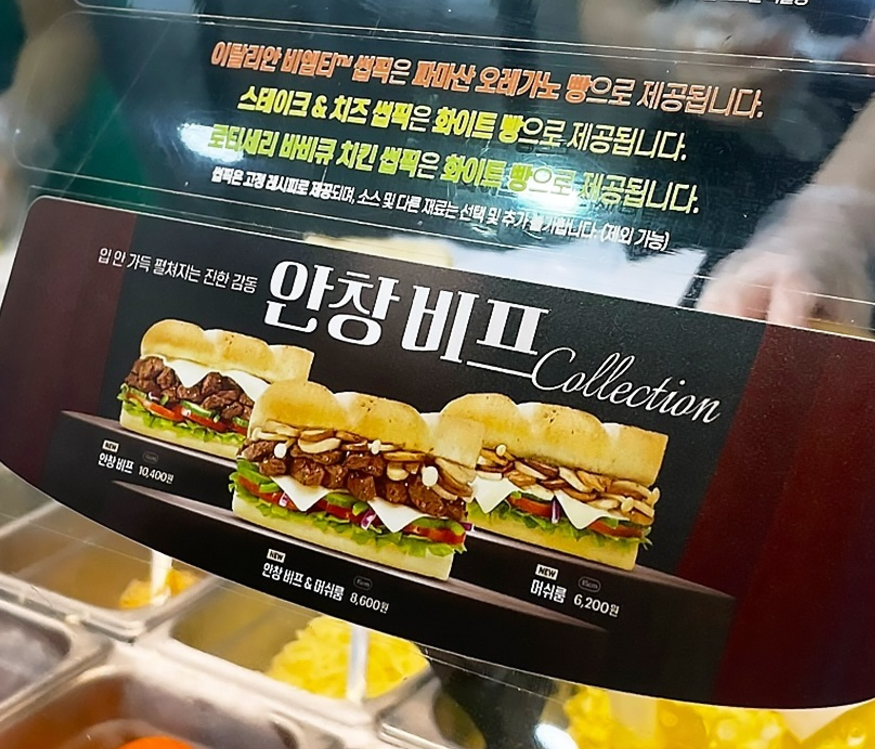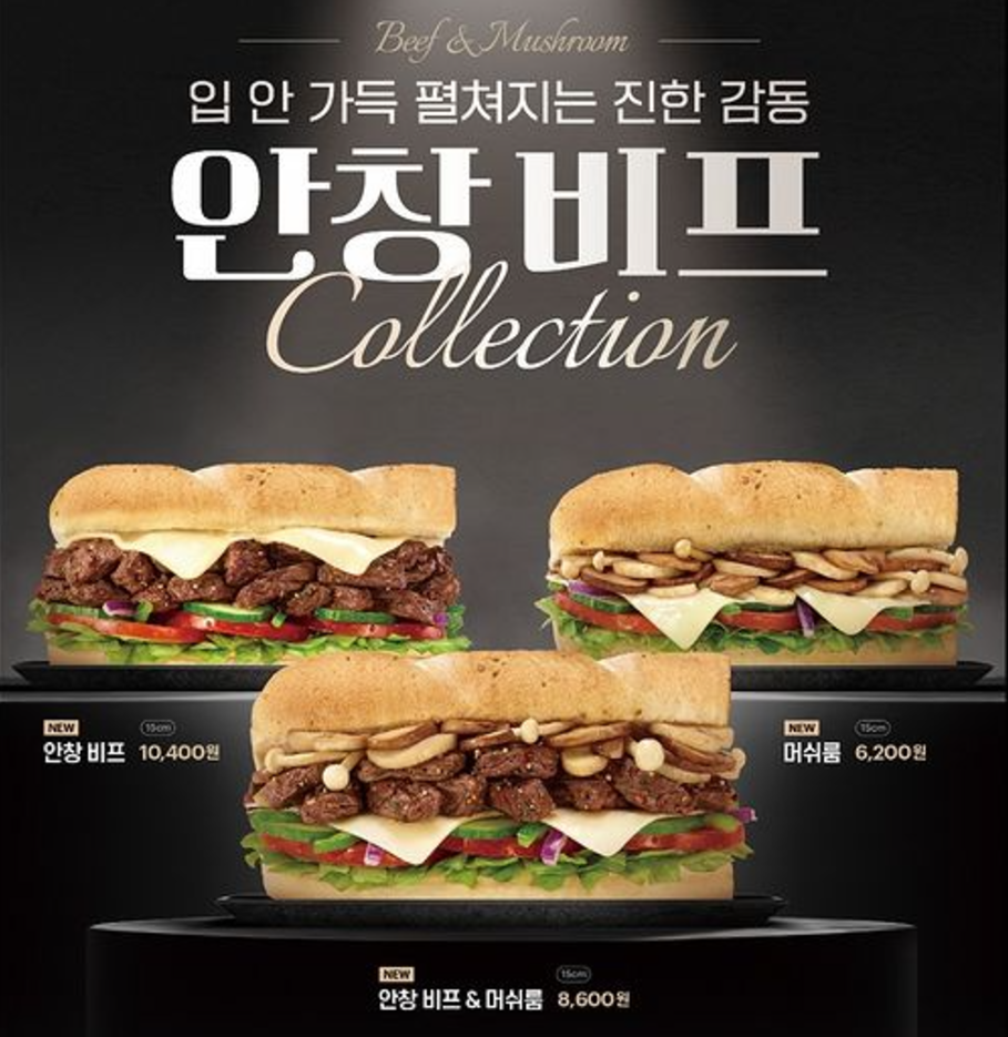 이번에 새로 나온 메뉴는 3종으로 출시가 되었는데 써브웨이 안창 비프, 안창 비프 머쉬룸, 머쉬룸 요렇게 3가지 맛으로 나왔고 한정 메뉴라고 하니 드실 생각이 있으신 분들은 기간 내에 드시는 게 좋을 것 같아요.