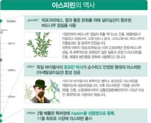 4. 시판되는 아스피린 제품들과 특정 사용 목적