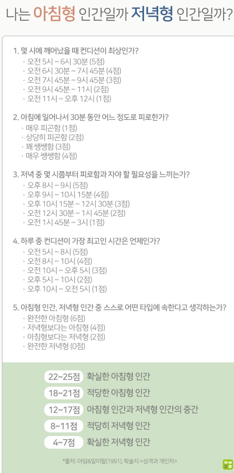 1. 나는 아침형 인간일까? 저녁형 인간일까?