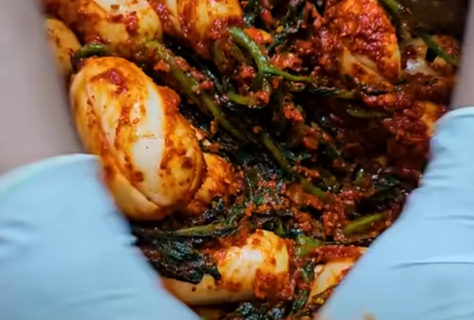 - 양념 재료: 양파 1개, 마늘 한 웅큼, 대파 1단, 찹쌀풀 또는 밀가루풀 또는 밥 크게 1큰술, , 고추가루 크게 3큰술, 액젓 (멸치나 까나리 등) 5큰술, 매실청 3큰술