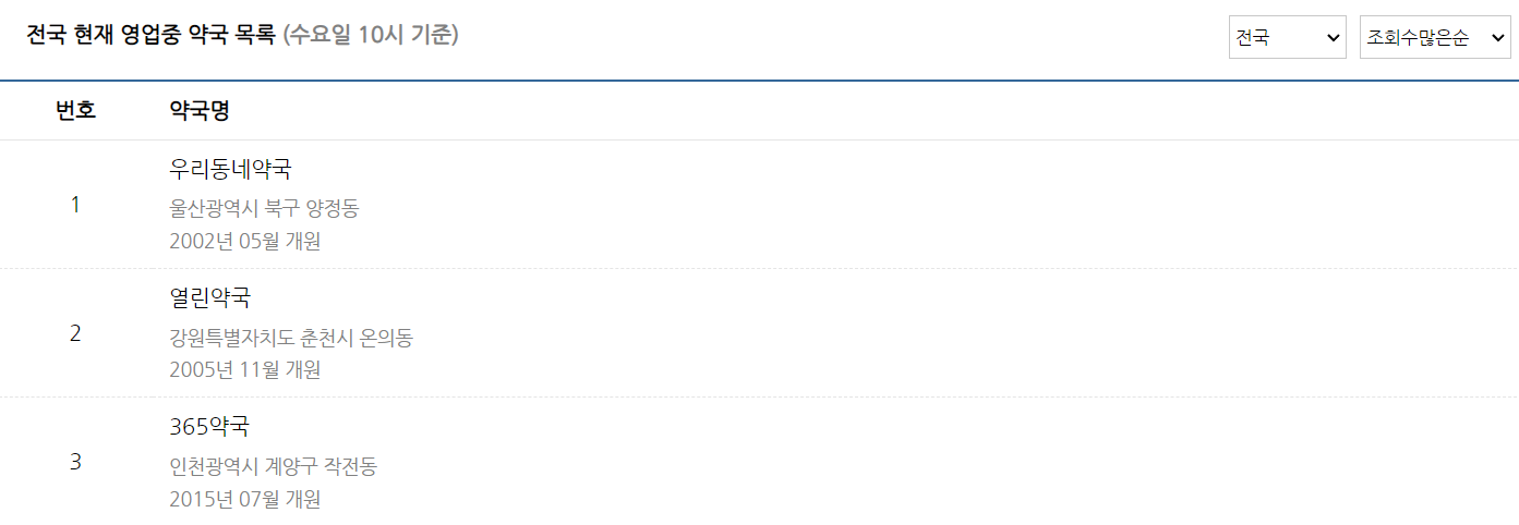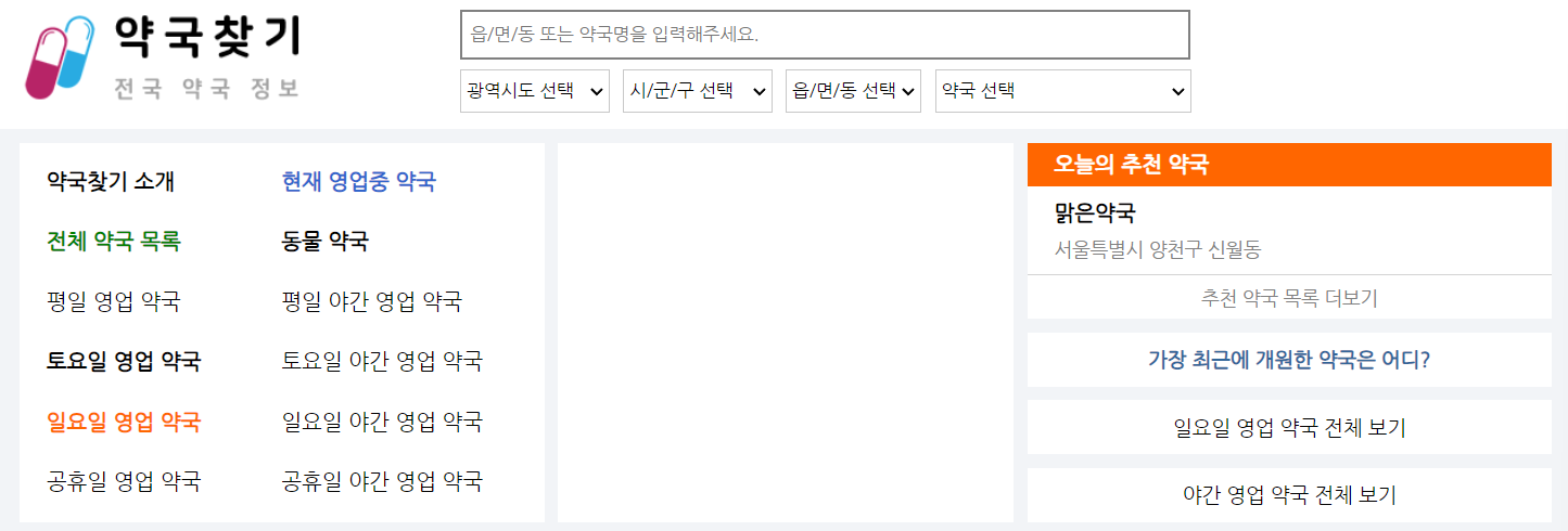 단순히 읍/면/동 또는 약국명을 입력하거나 시와 도를 입력하는 것으로, 여러분의 주변이나 특정 지역에서 일요일 운영 중인 약국 리스트를 빠르게 얻을 수 있죠.