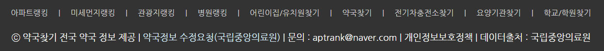 휴일지킴이약국 홈페이지에서는 가장 최근 개원한 약국 및 야간 영업 약국도 빠르게 확인할 수 있으며, 동물 약국도 지역별로 간편하게 찾을 수 있습니다. 또한 웹사이트 하단 관련 사이트를 통해 미세먼지랭킹, 관광지랭킹, 병원랭킹, 어린이집/유치원 찾기, 전기차충전소 찾기, 요양기관 찾기 등으로 이동할 수도 있습니다.