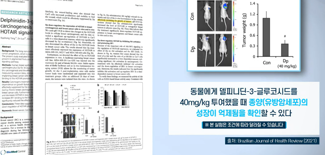 자보티카바에는 '델피니딘'이라는 성분 또한 신체에 도움이 되고, 암세포를 억제하는데 효능이 있는 것으로 알려져 있습니다.