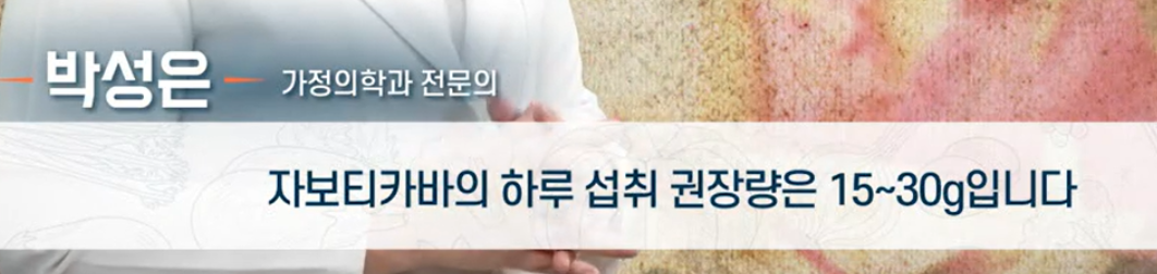 자보티카바의 하루 섭취 권장량은 15~30g입니다. 알레르기가 있거나 특이 체질이신 분들은 전문가와 상담 후 자보티카바를 섭취하시는 게 좋겠습니다.