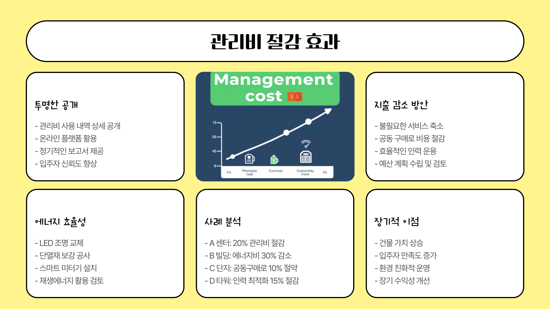 관리단이 있으면 관리비 사용 내역을 투명하게 공개하고, 불필요한 지출을 줄이는 방안을 모색할 수 있습니다. 예를 들어, 관리단이 에너지 효율성을 높이기 위해 LED 조명을 설치했을 경우, 장기적으로 관리비를 절감하는 효과를 볼 수 있어요.
