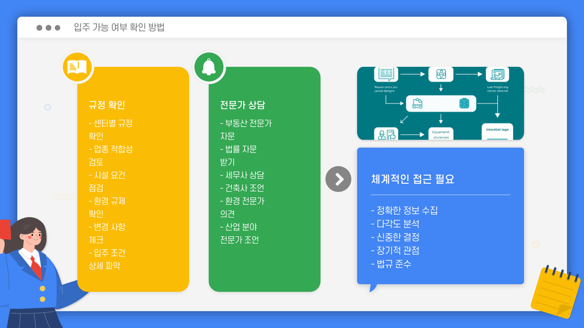 마지막으로, “내 업종이 지식산업센터에 입주할 수 있을까?” 고민하고 계신 분들에게 조언을 드리고 싶어요. 각 지식산업센터마다 규정이 다를 수 있으니, 직접 문의해보는 것이 좋습니다.
