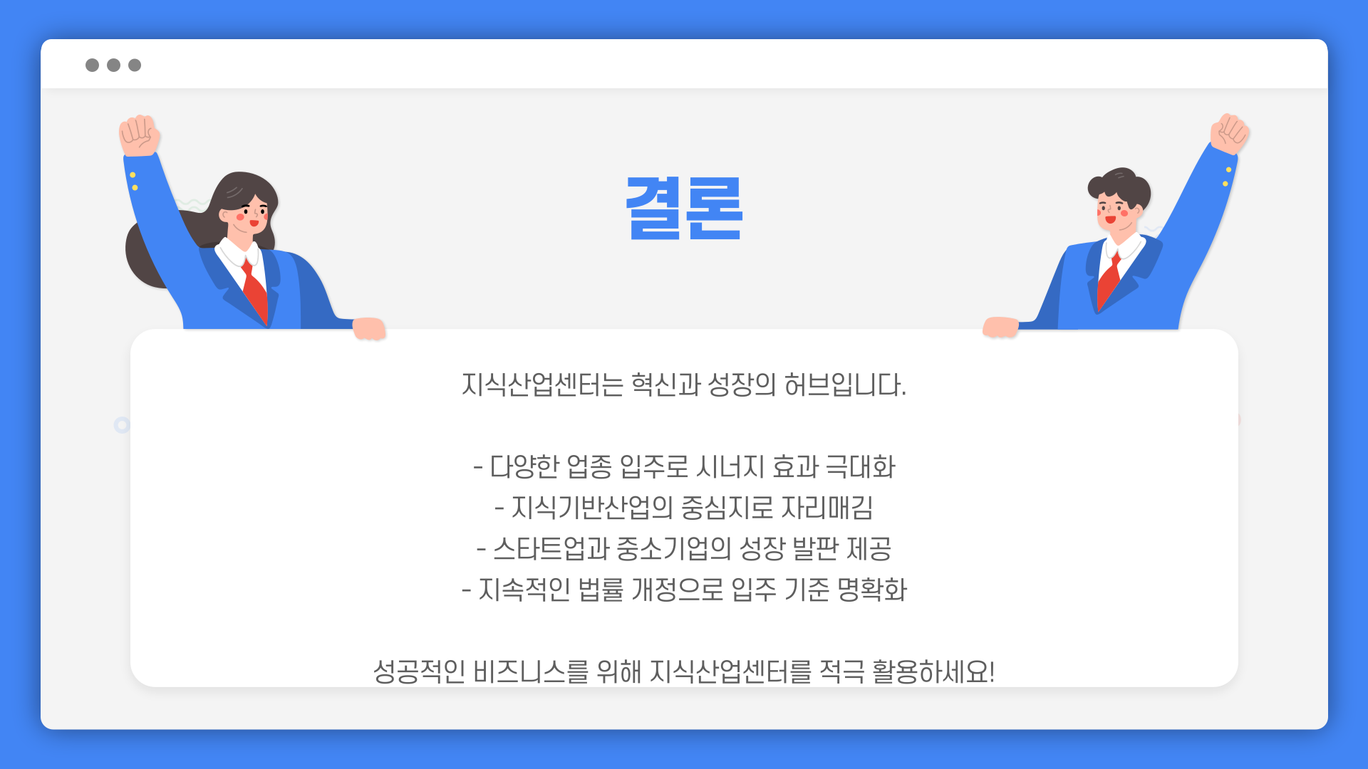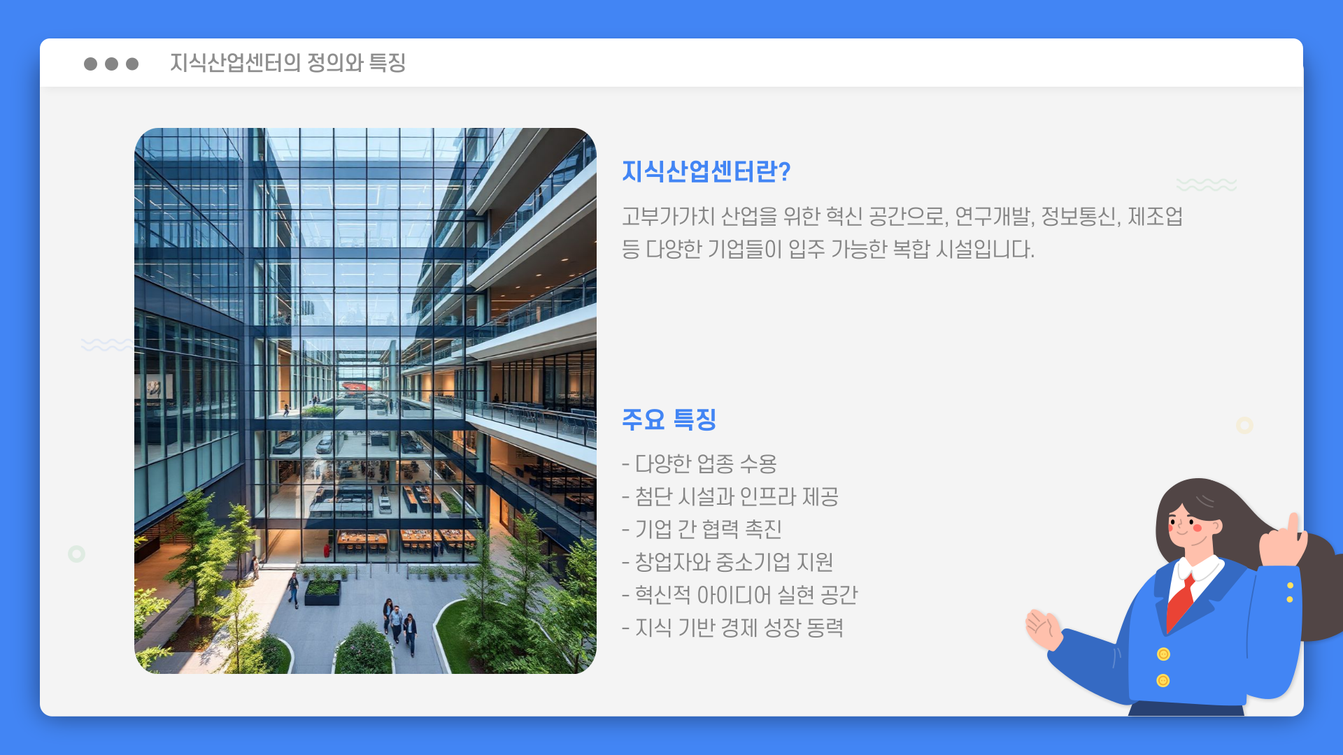 예를 들어, 제가 아는 한 친구는 디자인 회사를 운영하는데, 지식산업센터에 입주해서 보다 많은 클라이언트를 확보할 수 있었어요. 이처럼 지식기반산업은 성장 가능성이 높고, 지식산업센터와 잘 어울린답니다.