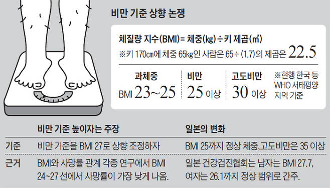 체질량지수란 BMI(Body Mass Index)로 불리며 신장인 키와 몸무게를 나누어 비만도를 표현하는 계산 지표로,