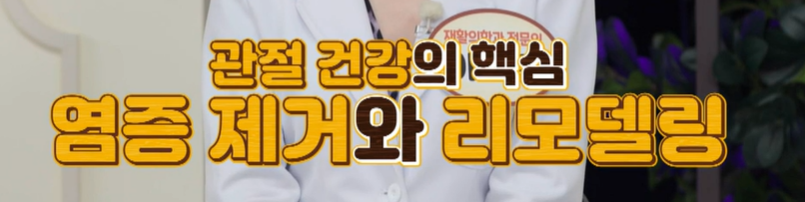 따라서 관절 건강은 염증을 제거하고 리모델링하는 것이 최적의 방법이라고도 할 수 있겠습니다. 즉, 낡은 집에 곰팡이를 제거하듯 염증을 싹 제거해서 깨끗한 관절로 리모델링해야 백세까지 관절을 쓸 수 있다는 것입니다.