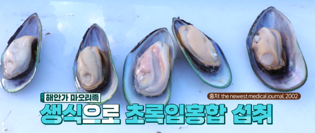이런 물질이 축적된 플랑크톤을 초록입홍합이 먹고 자연스럽게 항염 물질을 축적을 하게 되는 것입니다. 때문에 초록잎홍합은 항염, 항산화 물질 풍부해 염증을 억제하는 데 도움이 된다고 볼 수 있습니다.