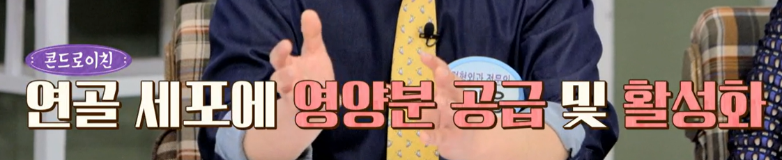 우리가 흔히 관절 건강을 위해 먹는 도가니탕이나, 곰탕 같은 음식을 먹으면 관절에 좋다는 얘기가 많습니다. 물론 소 연골인 도가니에도 콘드로이친이 포함이 돼 있습니다. 하지만 식품만으로 연골 속 콘드로이친을 채우기에는 무리가 있습니다.