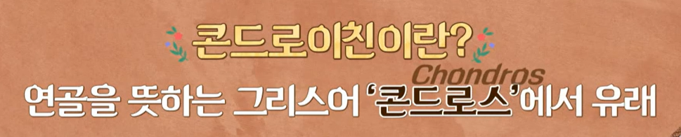 콘드로이친은 연골을 뜻하는 그리스어인 '콘드로스'라는 단어에서 유래한 것입니다. 즉 콘드로이친은 이미 우리 연골을 구성하는 핵심 성분이라고 보시면 됩니다.