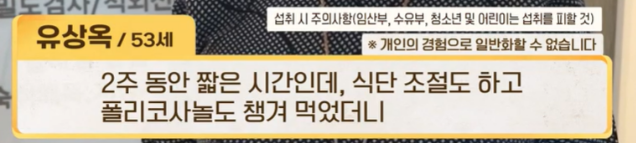 10여 년 전 찾아온 두 번의 뇌졸중 이후 후유증과 고혈압, 당뇨로 고통받던 김혜란 씨와 고혈압과 고지혈증, 지방간으로 혈관 질환을 걱정하던 유상옥 씨가 규칙적인 운동과 더불어 체계적인 식단 관리를 병행, 마지막으로 폴리코사놀까지 섭취해 보았습니다.
