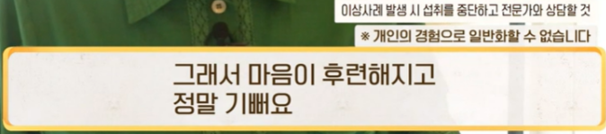 이번에 폴리코사놀 2주 섭취 후 검사 결과가 이제 너무 좋게 나왔고, 또 제가 생각할 때는 엄청 좋아진 것 같아요. 그래서 마음이 먼저 후련해지고 너무 기뻐요.