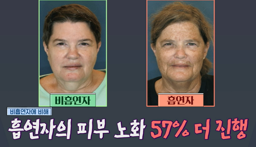 과도한 음주와 흡연은 프로테오글리칸을 감소시키므로 피부 건강의 적입니다. 실제로 쌍둥이를 흡연자와 비흡연자를 나눠 연구한 결과 흡연자의 경우 피부 노화가 57% 더 빨리 진행해 주름이 심해졌다는 결과가 있습니다.