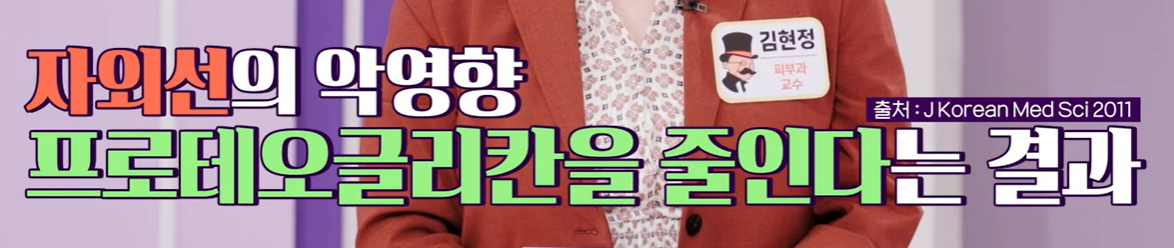 프로테오글리칸의 양은 자외선을 받으면 감소되기 때문에 평소 자외선 차단제를 꼼꼼하게 바르고 3~4시간마다 덧바르는 것이 좋습니다.