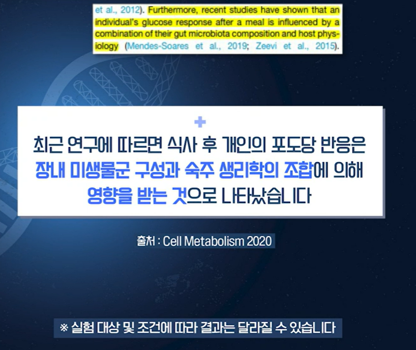 또한 한 논문에 따르면, 똑같이 식사를 해도 사람마다 혈당 수치가 다른 이유가 장내 세균 때문이라는 것을 밝혀냈는데요. 장내 세균, 즉 마이크로바이옴은 체내의 에너지 항상성에 영향을 줍니다.