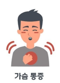 가슴 통증은 가슴의 중앙 혹은 왼쪽 부분에서 느껴지는 뻐근함이나 압박감으로 나타납니다.