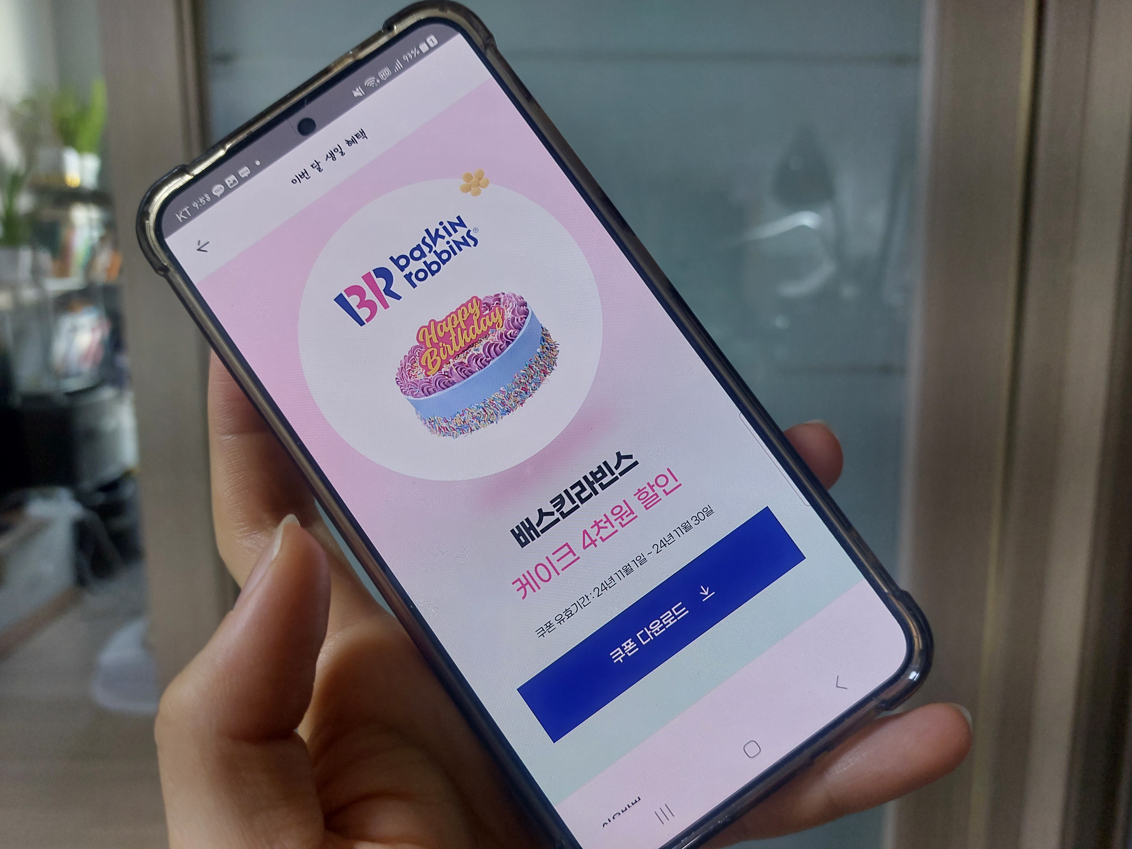 생일 당일 친구들과 함께 나누기에도 좋은 선택일텐데 특히 매달 새로운 맛이 출시되는 베스킨라빈스 케이크는 남녀노소 좋아하는 디저트가 아닐까 싶어요. 매장에서 현장 결제 시 쿠폰 제시 후 이용 가능하며 키오스크에서는 모바일쿠폰 / 할인쿠폰 선택 후 쿠폰을 리딩해주시면 되어요.