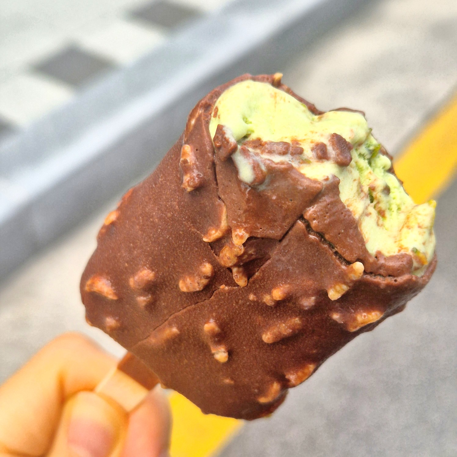 이 아이스크림의 식감은 정말 독특해요! 카다이프가 굵직하게 씹히면서도 바삭한 느낌이 나고, 피스타치오 크림은 부드럽고 고소해요. 초콜릿과 함께 우걱우걱 씹어도 달콤하면서 바삭한 식감이 일품이에요. 여러 방법으로 즐길 수 있는 점이 매력적이죠.
